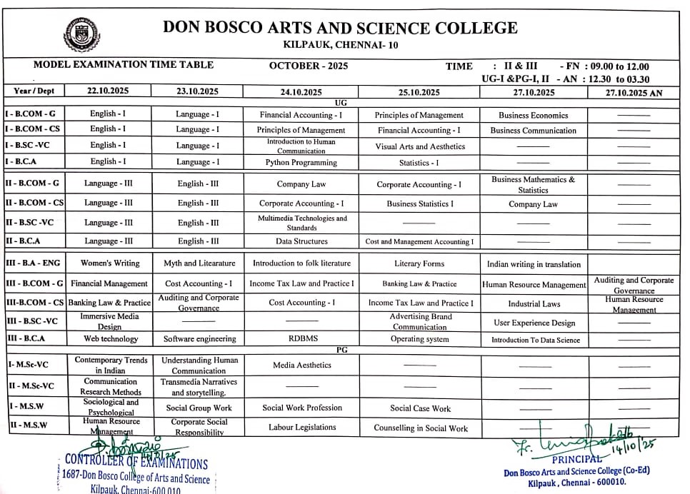 Don Bosco Arts and Science College, under the auspices of Salesians of Don Bosco established in the year 2016, is a place of higher learning in the field of communication, art and design, commerce and management. The primary aim of the college is to develop the creative intellectual potential of its students and to form them to become intelligent contributors and critical consumers of communication, design, media, business and commerce.