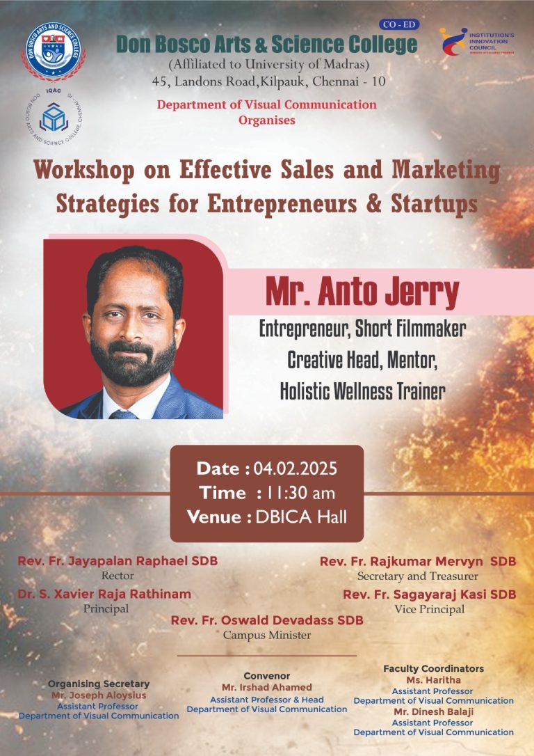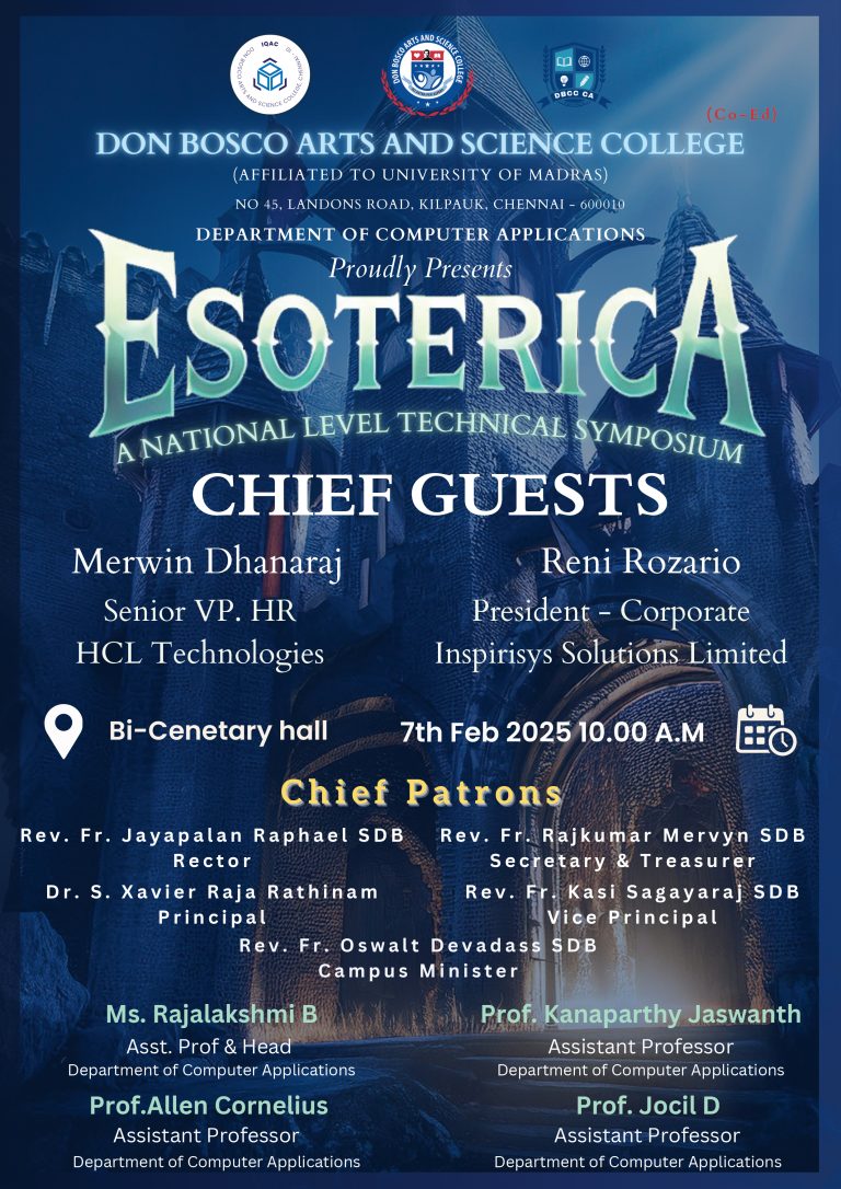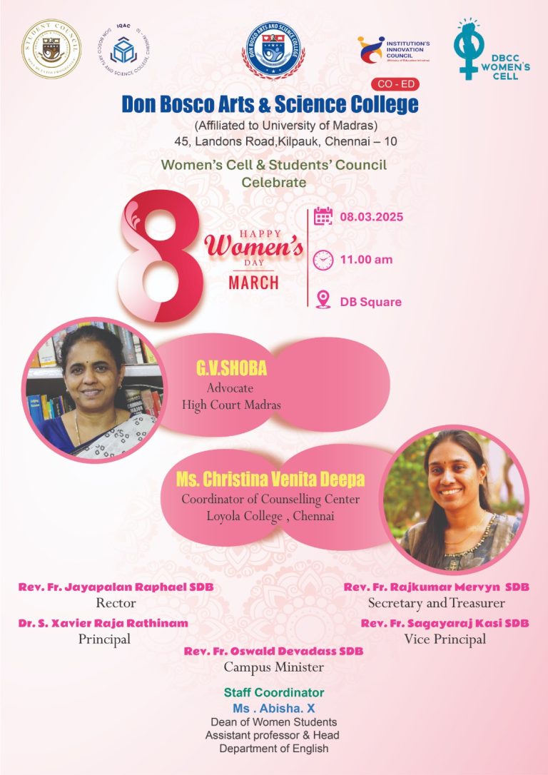 At Don Bosco Arts & Science College, we are committed to nurturing young minds not only through quality academic instruction but also by instilling strong values of discipline, responsibility, and compassion. As Principal, I firmly believe that education goes beyond books — it is about empowering each student to realize their full potential, embrace challenges with courage, and contribute meaningfully to society.